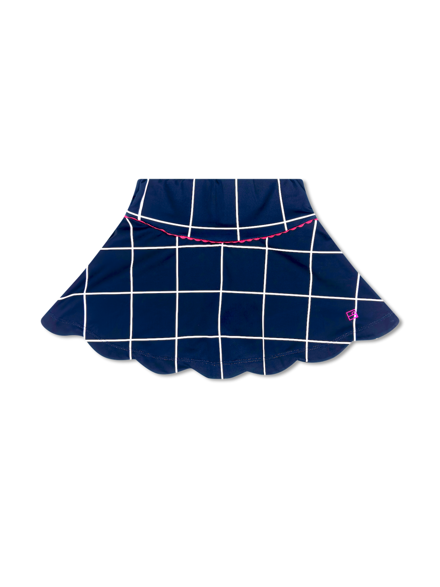 Zoe Scallop Skirt - Nantucket Navy Willington Windowpane, Power Pink