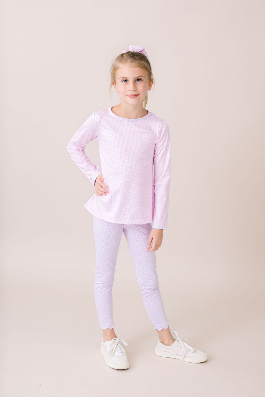 Sadie Scallop Legging - Petal Purple Minigingham