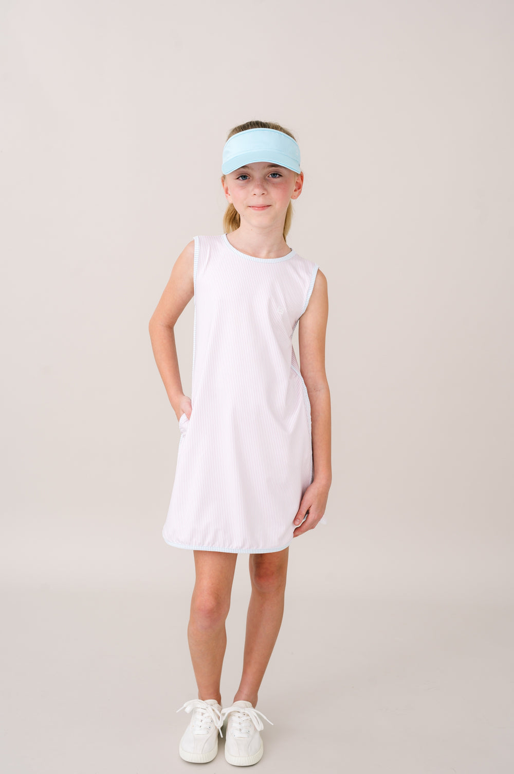 Tinsley Tennis Dress - Cotton Candy Pink Ministripe, Pure Coconut