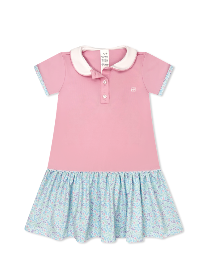 She will be ready to play her best game yet in our athleisure Darla Dropwaist Dress. Sporty, stylish, and oh-so-comfortable in Cotton Candy Pink athleisure with Frosted Floral athleisure skirt and welting.