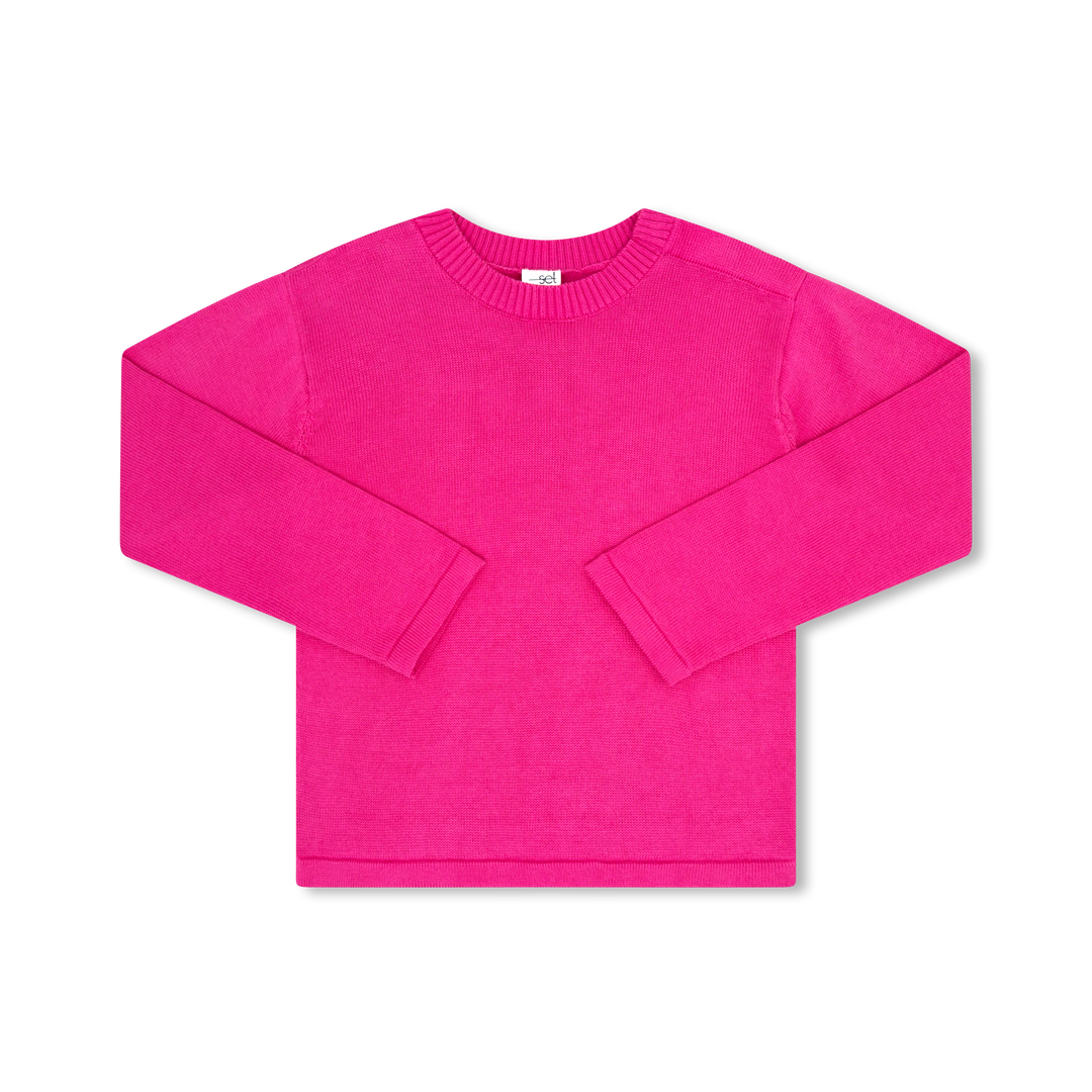 The Stella Sweater is a shorter style perfect for layering with our tees. This Power Pink sweater can be paired with any of our bottoms for an adorable look.