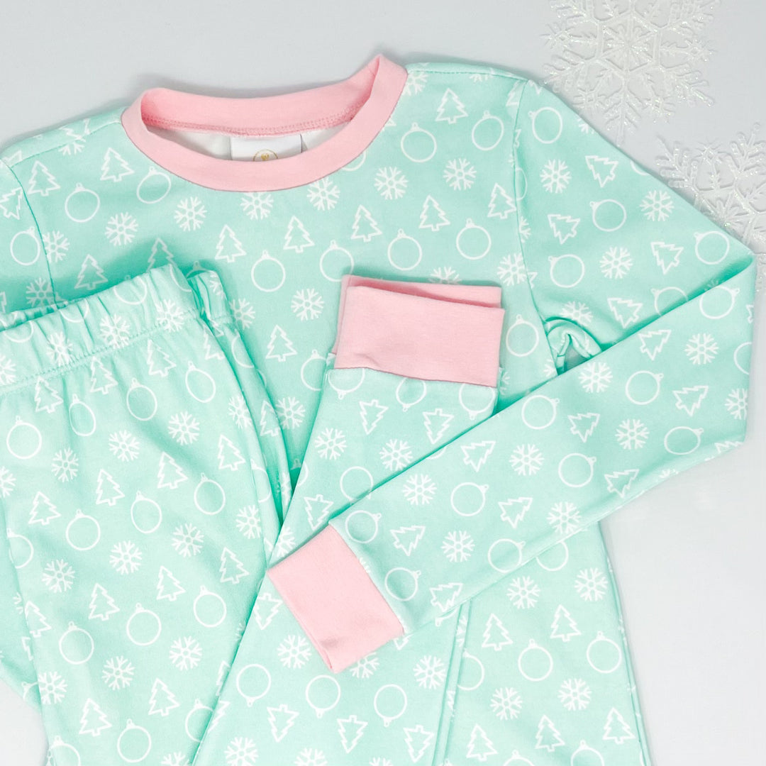 Make the holidays extra special with this Sweet Pea PJ Set in our Very Merry print with Cotton Candy Pink accent.